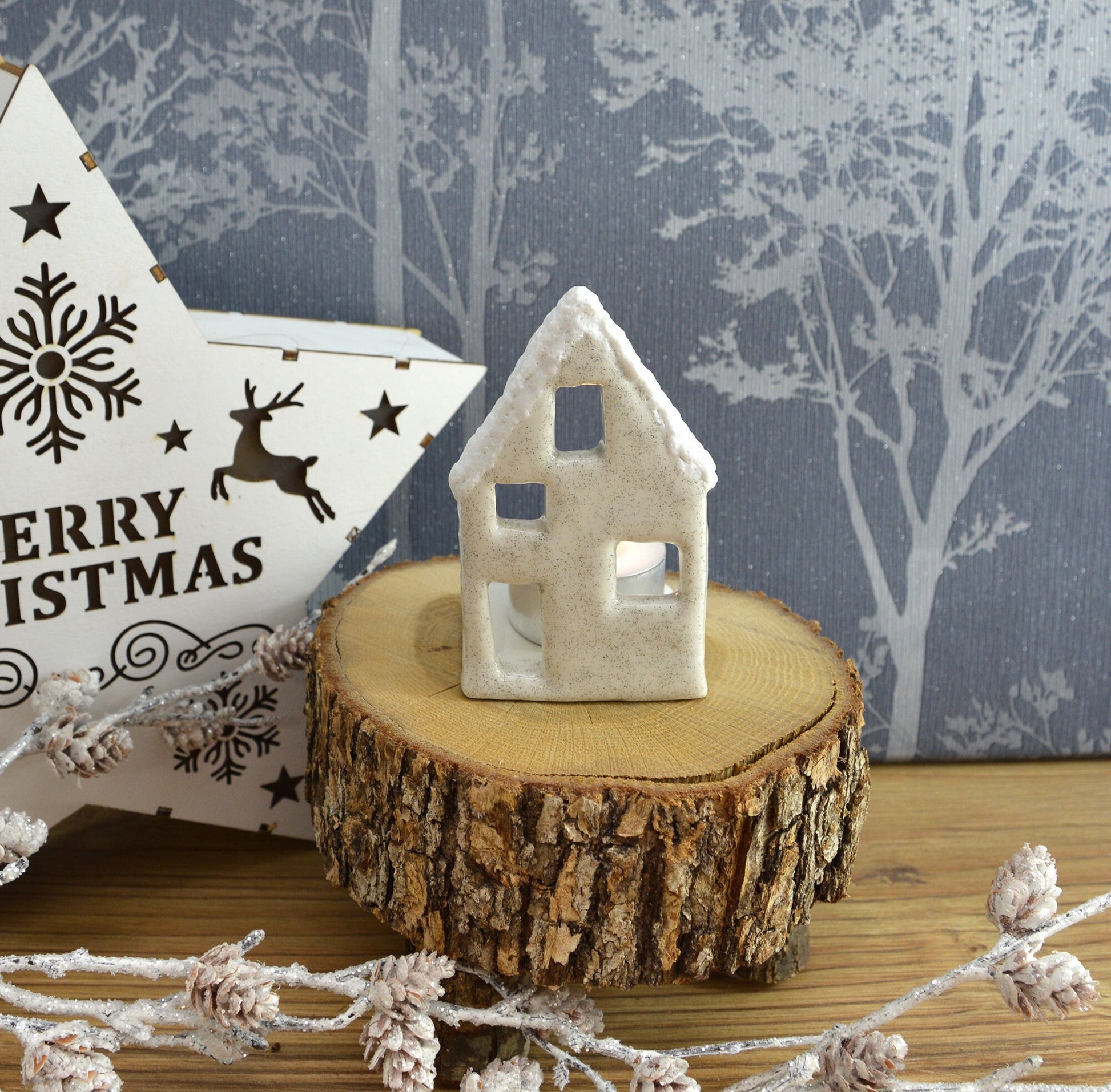 Unique Handmade Ceramic Little Christmas House Tealight